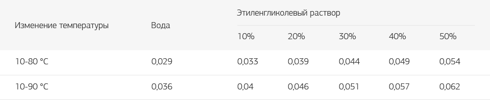 Коэффициент расширения теплоносителя (n) определяется по таблице: