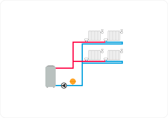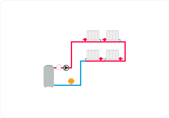 Основное преимущество такой схемы - небольшой расход труб.