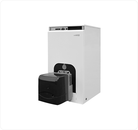 Жидкотопливный котел - это котел максимально оптимизированный производителем для работы на дизельном топливе. Такие котлы поставляются с определенной моделью дизельной горелки (уже заранее установленной и настроенной самим производителем) и рассматривается в данном случае, как единое целое вместе с вентиляторной горелкой.