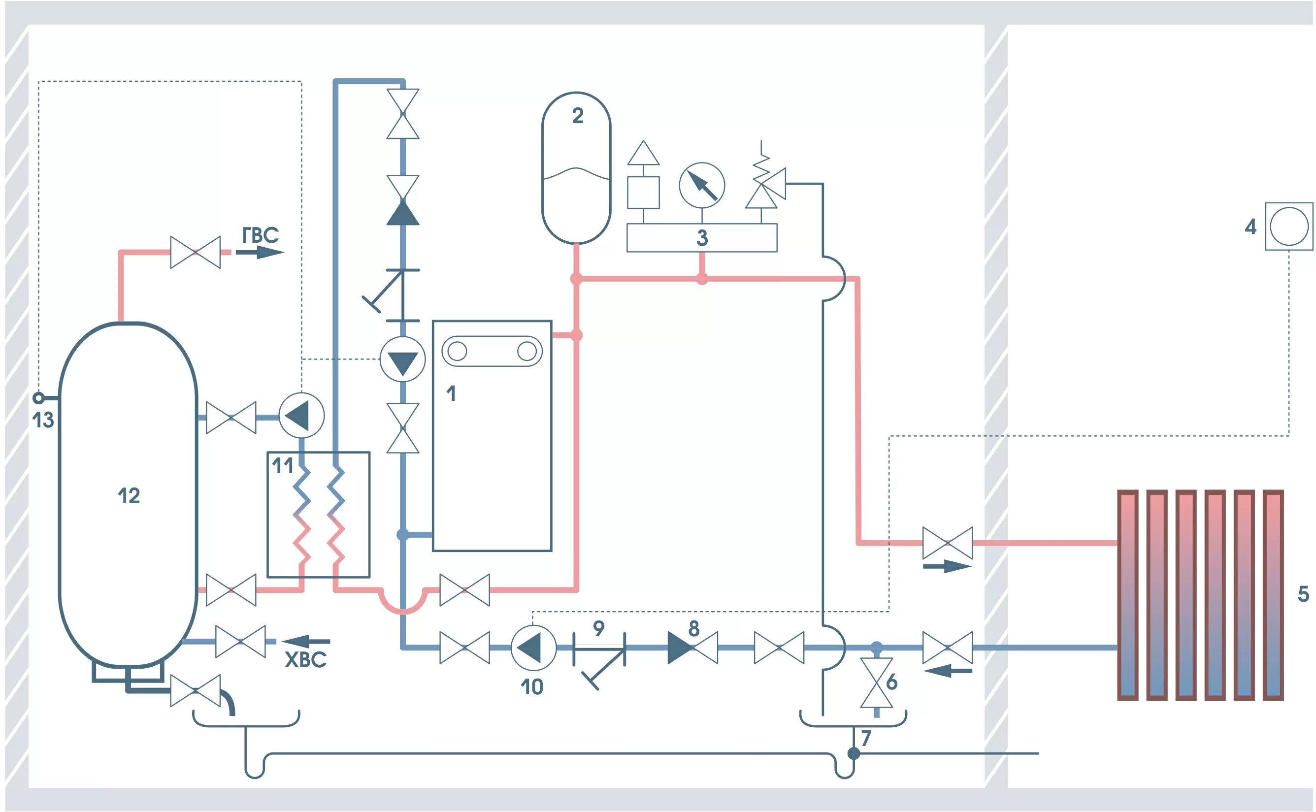 Прибор может применяться совместно с другими источниками теплоснабжения в качестве основного или резервного.