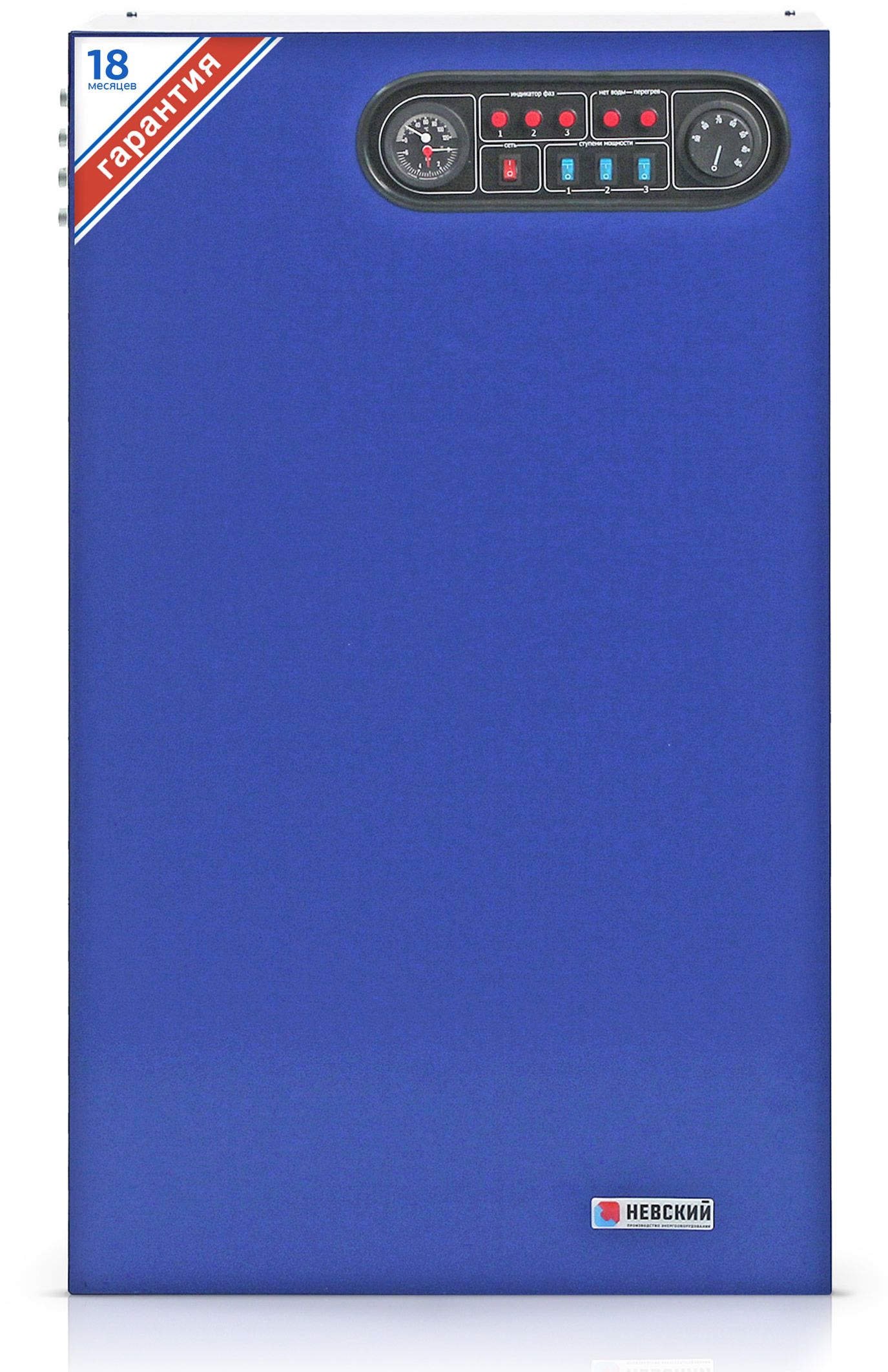 Монтируется на стене, занимает мало места и не требует отдельного помещения для размещения, имеет встроенный термоманометр. Котел имеет каскадное включение ступеней, контролирует наличие теплоносителя, входное напряжение, имеется возможность подключения дополнительного реле протока и термостата-программатора.