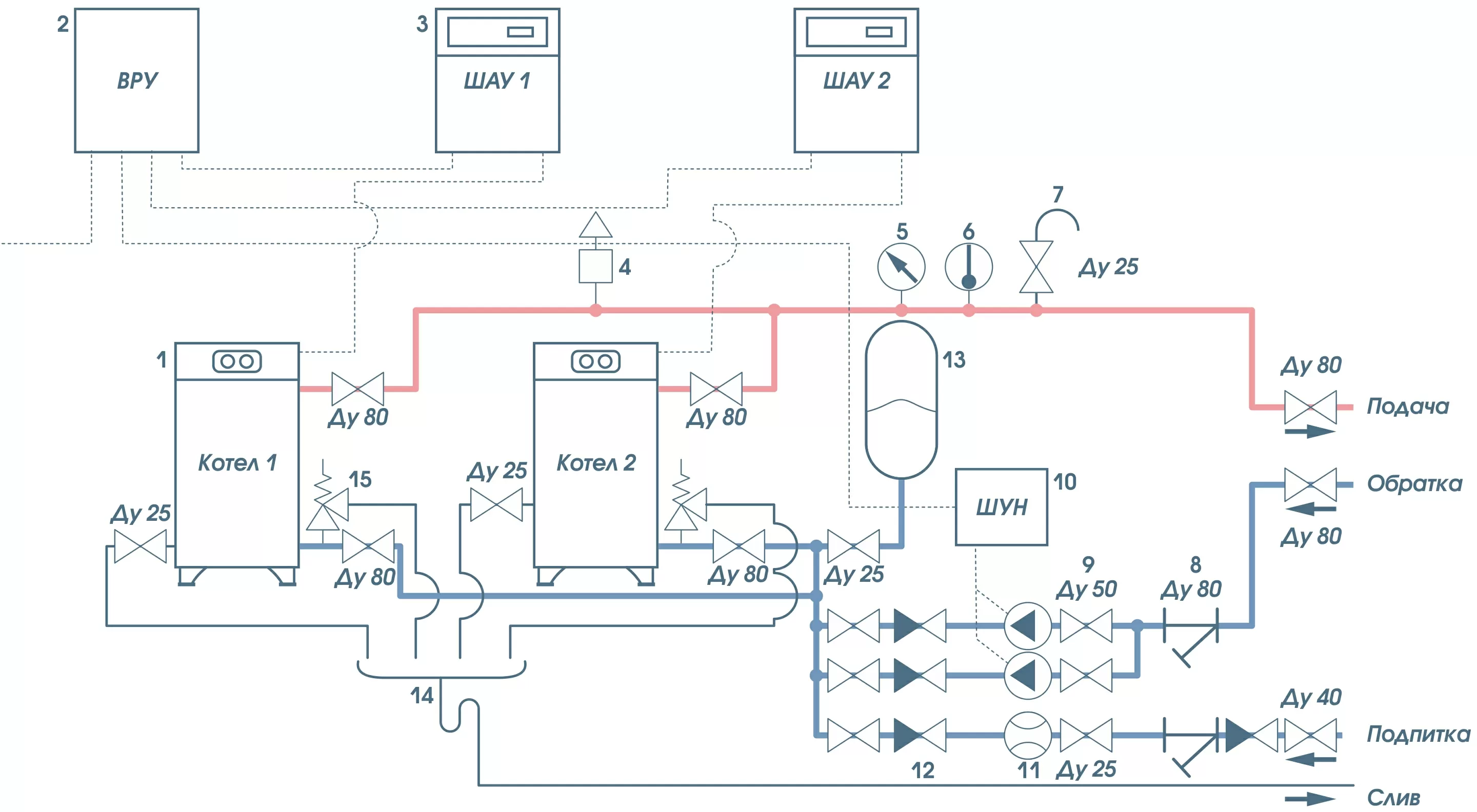 •двойной контроль давления теплоносителя