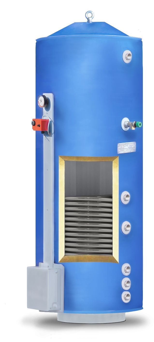 Встроенный трубчатый теплообменник 45 кВт представляет собой спираль из нержавеющей трубы, расположенную в нижней части бака. Он обеспечивает нагрев воды в баке водонагревателя горячим теплоносителем (водой или антифризом), проходящим через теплообменник. Регулирование температуры воды в водонагревателе осуществляется электромагнитным клапаном по сигналу от терморегулятора.